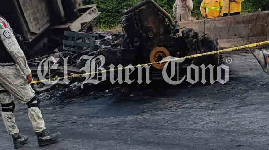 Cuitláhuac. – Después de los trabajos realizados por Bomberos de Córdoba y Cuitláhuac para apagar el fuego en los dos tráileres que chocaron en la autopista Córdoba-Veracruz, se confirmó el fallecimiento de una persona que murió en la cabina del tráiler tipo tolva, que era utilizado por ingenieros del Ejército Mexicano. Transportaban balasto para el camino del Tren Maya y el Interoceánico.