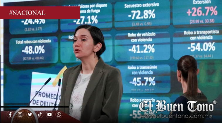 En cuanto a otros delitos de alto impacto, Figueroa señaló que también han disminuido, excepto la extorsión, que aumentó 23.1% de enero a noviembre de 2025 en comparación con el mismo periodo de 2019, pasando de un promedio diario de 25.11 a 30.90. No obstante, destacó que la estrategia nacional contra la extorsión, implementada en julio, ha permitido reducir 20% las denuncias ante las fiscalías y prevenir más de 77 mil intentos de extorsión, evidenciando un mayor control y prevención de este delito.
