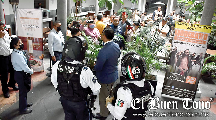 Orizaba.- El encargado del hotel GAMMA, Nicolás Granja solicitó la presencia de la Policía Municipal de Orizaba para desalojar a integrantes de dos agrupaciones de abogados, junto con reporteros por el supuesto delito de ‘incomodar a comensales’, con una rueda de prensa que se ofrecía en el solitario restaurante.