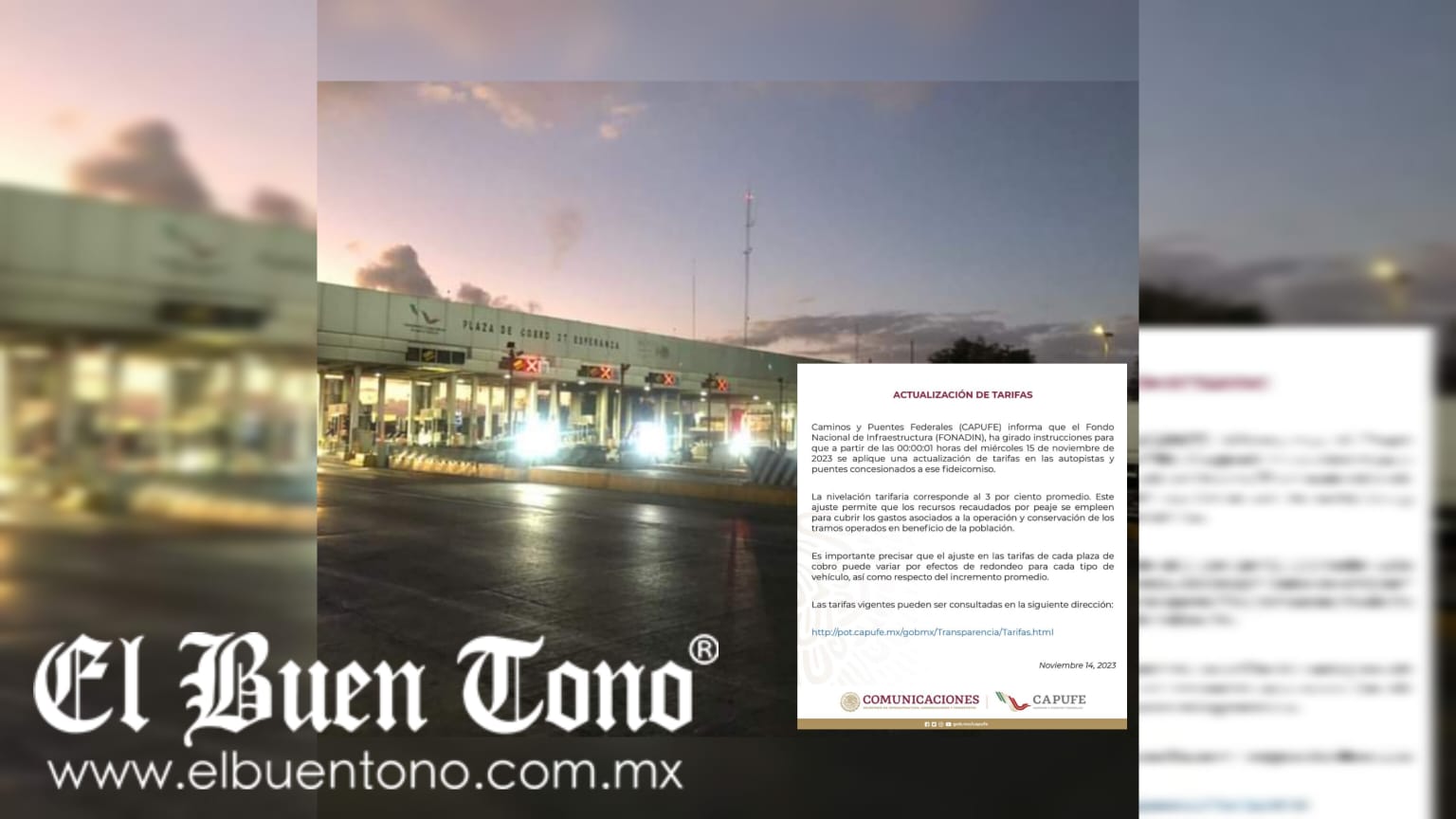 El aumento de tarifas en las casetas, anunciado este martes 14 de noviembre, será del 3 por ciento.