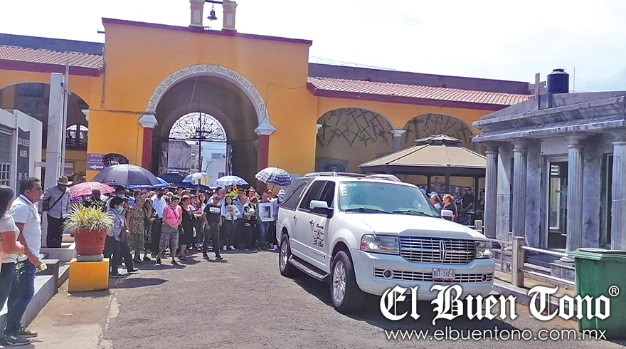 A las 09:40 horas, los restos de la docente fueron trasladados en cortejo fúnebre al panteón municipal Juan de la Luz Enríquez, donde los presentes arrojaron una rosa a la tumba en donde fue sepultada la profesora.
