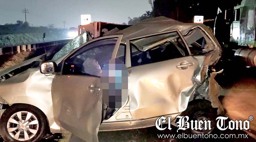 A la altura del kilómetro 278 el vehículo fue impactado por un tráiler que transportaba placas de cartón en un remolque tipo plataforma, el cual además embistió e hizo volcar a una camioneta tipo NP-300 de color blanco, placas XX-43-820 del estado.
