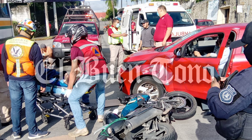 Fortín.- Un motociclista resultó con severas lesiones la mañana de este jueves, teniendo que ser atendido por paramédicos y trasladado al hospital, luego de impactarse contra un vehículo, cuyo conductor aparentemente realizó un corte de circulación, al momento de circular sobre el bulevar Córdoba-Fortín, a la altura de un centro comercial, arribando autoridades de la dirección de Tránsito Estatal para tomar conocimiento y proceder al retiro de las unidades.