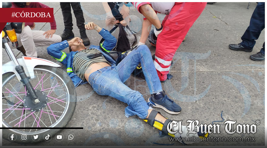 Córdoba.- Con una fractura en el tobillo derecho, resultó un motociclista que fue impactado por un automóvil Volkswagen Vento gris, el cual salió sin precaución de la avenida 17 y quiso cruzar la calle 9 en la colonia Esperanza.