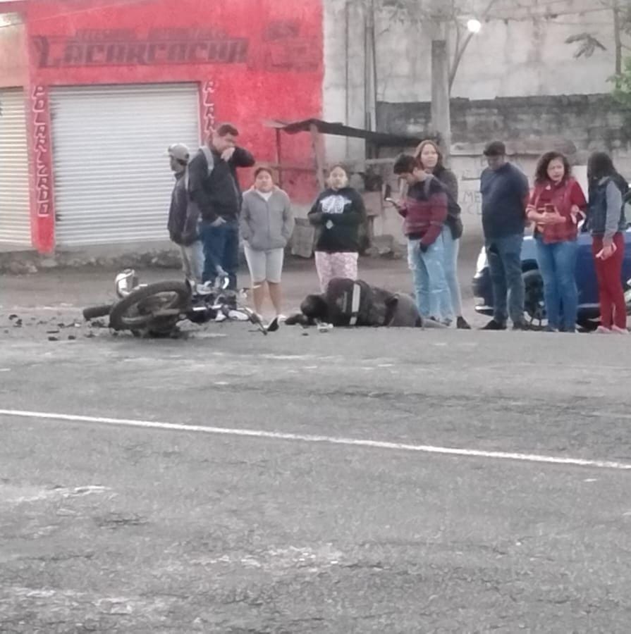 Cuitláhuac.- Un motociclista resultó lesionado y tuvo que ser trasladado a un hospital la mañana de este miércoles, luego de ser impactado por un automóvil cuando circulaba sobre la carretera federal Córdoba–Veracruz, a la altura de la comunidad de El Porvenir.