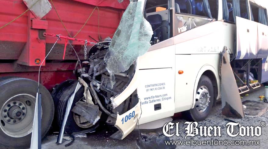 A la altura del kilómetro 168, el operador de la unidad no guardó su distancia y se estrelló contra la parte de atrás de una tolva con arena sílica, por lo que los pasajeros que iban adelante resultaron heridos.