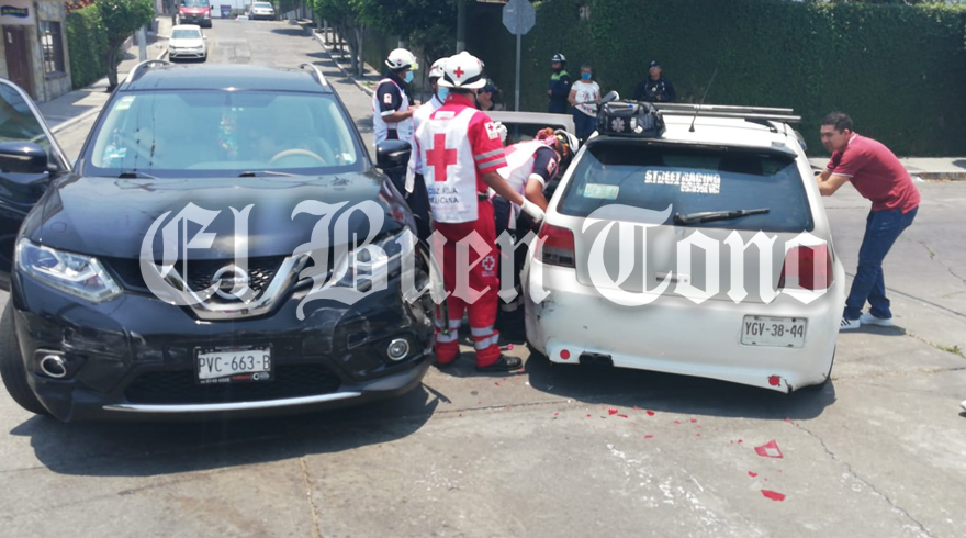 Al lugar arribaron paramédicos de Cruz Roja, quienes valoraron a una mujer que viajaba en el asiento trasero del vehículo Golf, pero por  fortuna las lesiones que presentó no fueron de consideración.