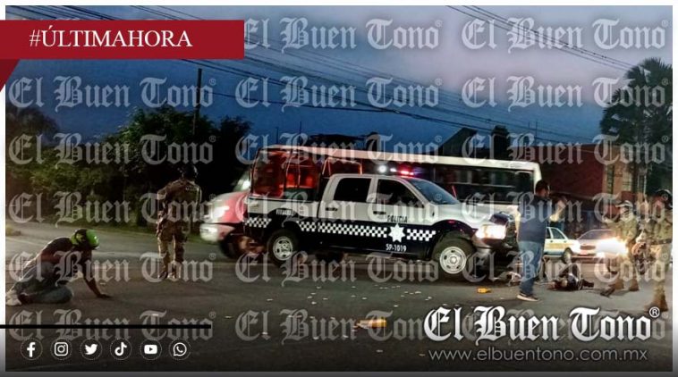 La patrulla y la motocicleta quedaron a disposición de elementos de Tránsito municipal para deslindar responsabilidades.