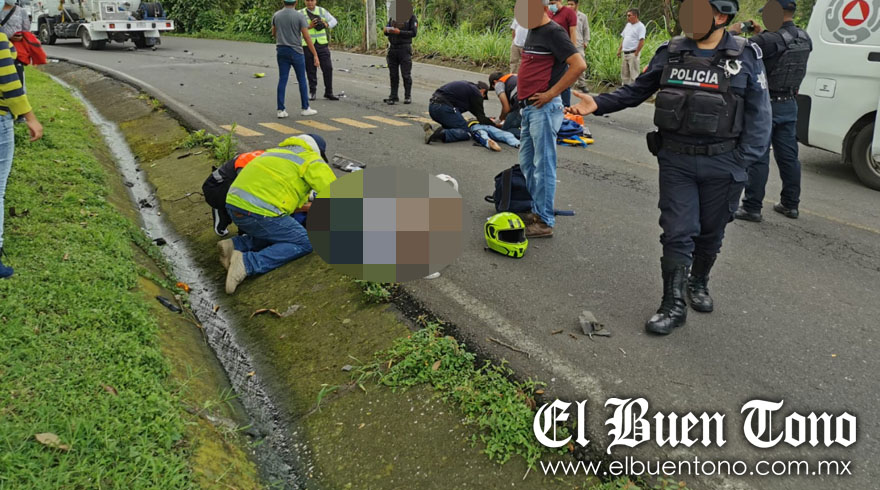 Chocamán.- Con lesiones en el cuerpo, resultó una pareja de motoristas la tarde de ayer, luego de que fueran impactados por el conductor de una pipa de gas, cuando circulaba sobre la carretera estatal Córdoba-Chocamán.