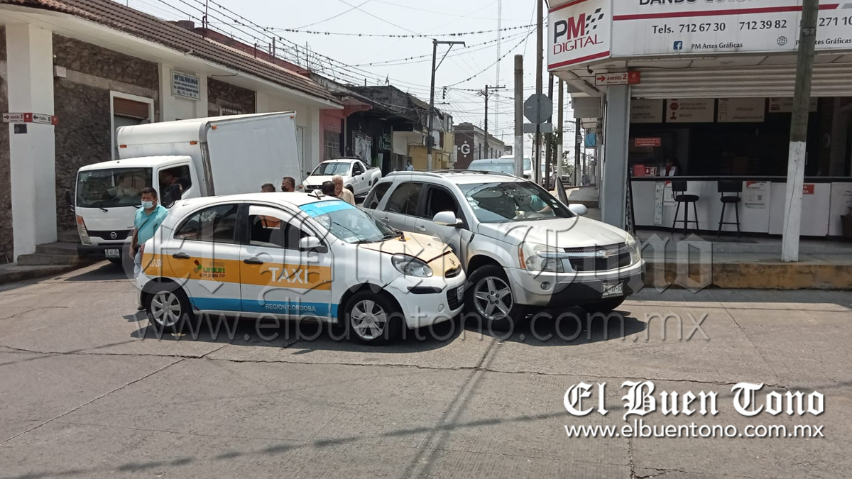 Córdoba,Ver.- Daños materiales y la obstrucción del flujo vehicular, fue lo que dejó la colisión entre un vehículo de alquiler y una camioneta Chevrolet la tarde de este lunes. El percance se registró en la avenida 2 y calle 8 cuando el conductor de la camioneta no respeto a la preferencia de paso, por lo que provocó la colisión. En el lugar ambos conductores llegaron a un acuerdo monetario para el pago de los daños materiales sin que intervinieran las autoridades correspondientes.
