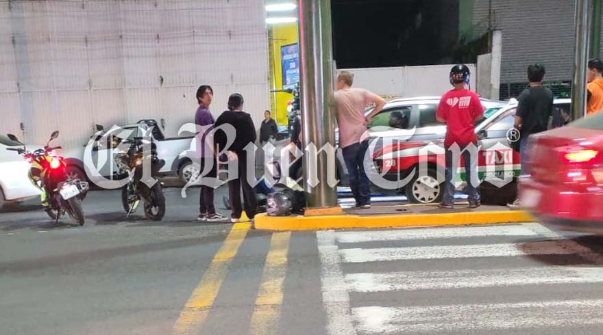 Atrás de él se aproximaba el taxi número económico 28, perteneciente al municipio de Río Blanco, el cual, al llegar al final del camellón, el conductor no midió su distancia y, en consecuencia, lo impactó.