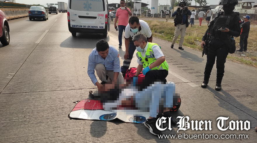 El percance se registró a la altura del kilómetro 297 cerca del Trébol de Amatlán, cuando el joven identificado como José Alberto Soto Juárez, de 17 años de edad y habitante de la colonia Fredepo, circulaba a bordo de su motocicleta Bajaj-Pulsar y fue impactado por un vehículo para quedar tendido sobre la carpeta asfáltica.
