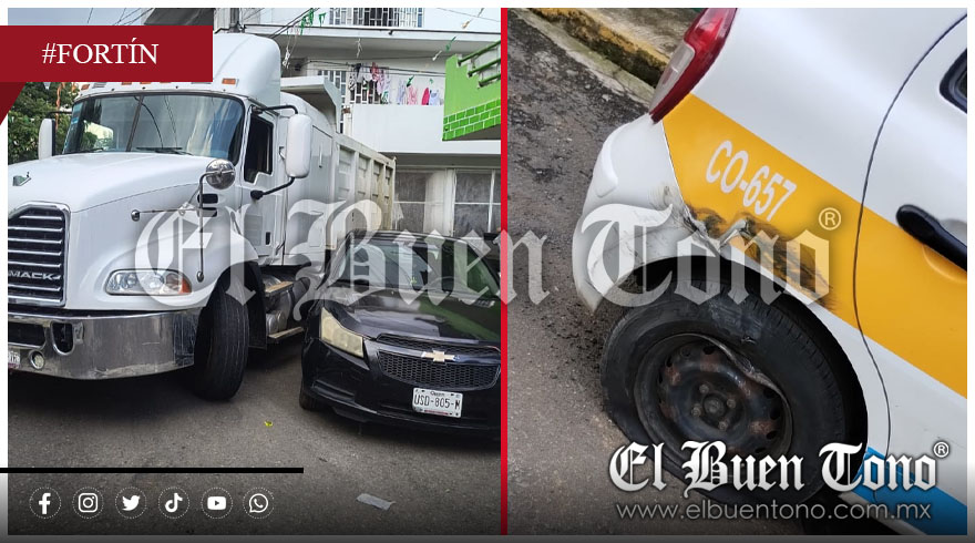 Fortín.- Un imprudente conductor de un camión de volteo, impactó a tres vehículos estacionados en una de las calles de la colonia Terminal.