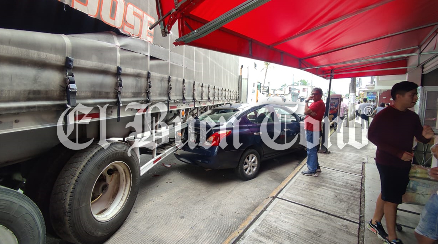 Córdoba.- Un imprudente trailero que realizaba maniobras para incorporarse a la avenida principal de la colonia La Luz Francisco I. Madero, causó daños en un parasol de una tienda, además de chocar contra tres vehículo estacionados en ede lugar.