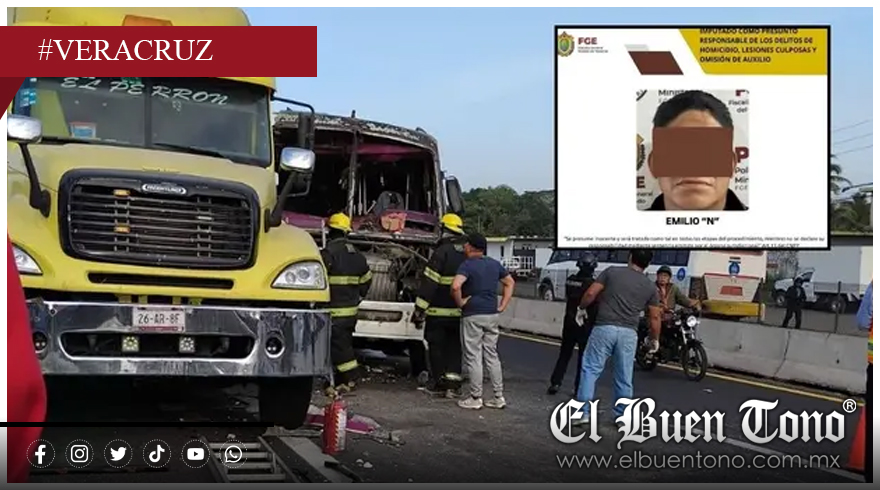 Veracruz, Ver.- La Fiscalía General del Estado (FGE) informó que Emilio “N”, operador del tráiler involucrado en un accidente ocurrido la mañana del viernes 17 de enero sobre la autopista Veracruz-Cardel, fue imputado como probable responsable de los delitos de homicidio en agravio de Alfonso Hernández Reyes, lesiones culposas y omisión de auxilio en perjuicio de los pasajeros lesionados.