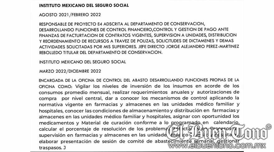 Orizaba.- La falta de medicamentos e insumos son la constante en esta delegación del IMSS Veracruz Sur, ya sea por corrupción, por facturas infladas, licitaciones amañadas, ahora por supuesto nepotismo ejercido por la médico general Magdalena Chiquito, quien de manera descarada le da trabajo a Francisco Hernández Covarrubias y a la esposa de este la Ing. Janet Bochas, quien con su nula experiencia es comisionada por la médico general Chiquito como encargada de la oficina de control de abasto, ante la falta de oficio, Janet recuerda y amaga a los empleados del almacén delegacional la relación familiar que mantiene con la titular y la gran tiranía que ejerce la médico general Magdalena Chiquito donde hasta el perico es enquistado para seguir causando daño patrimonial a las arcas de IMSS.