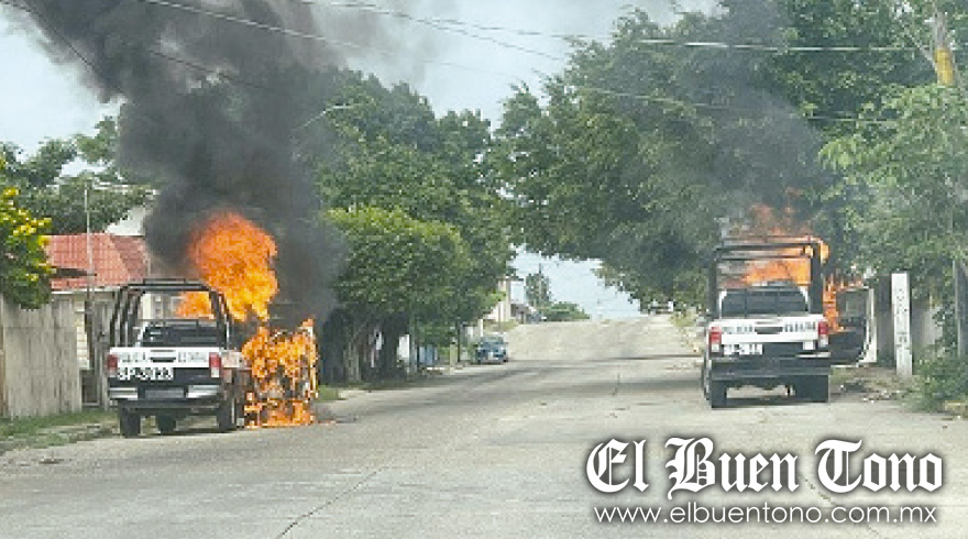 Coatzacoalcos.- Elementos de la Secretaría de Seguridad Pública fueron atacados por grupo de delincuentes quienes incendiaron dos vehículos oficiales, que se encontraban estacionados en la vía pública, cerca de un taller, al aventarles bombas Molotov. De acuerdo a información oficial no hay oficiales heridos.