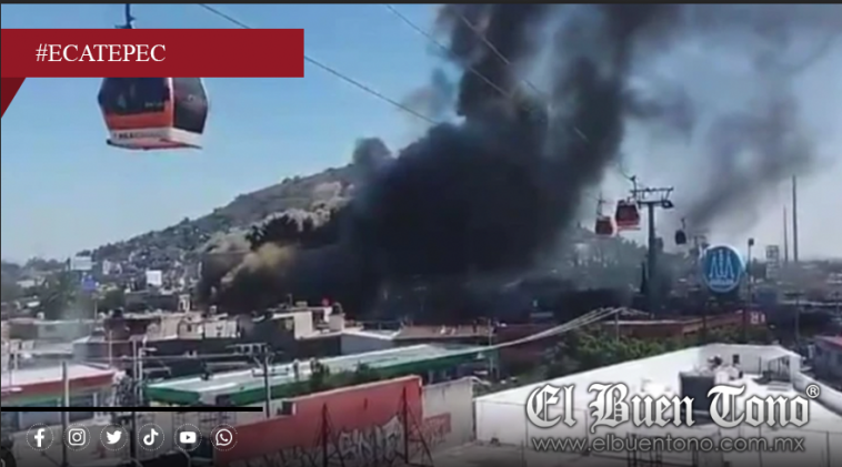 Ecatepec, Edomex.- Un incendio se registró este martes alrededor del mediodía en una bodega de espumas y colchones ubicada en la colonia Hank González, en el municipio de Ecatepec de Morelos. La emergencia provocó una enorme columna de humo que pudo verse desde distintos puntos de la zona, lo que generó alarma entre los vecinos y llevó a la suspensión del servicio de Mexicable entre las estaciones Hank González y Santa Clara.