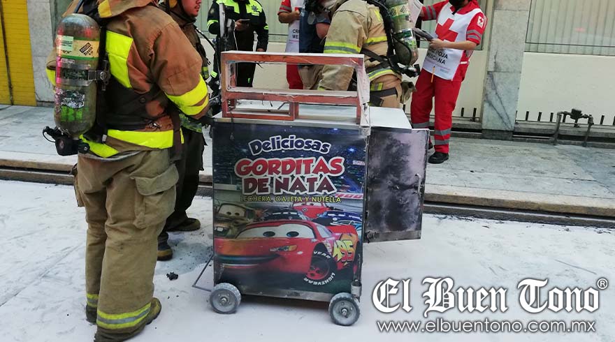 Córdoba.- Una fuga en un tanque de gas provocó un incendio en un carrito ambulante que vendía “Gorditas de Nata”, mientras se desplazaba por la calle 11, entre las avenidas 2 y 1 del Centro de la ciudad.