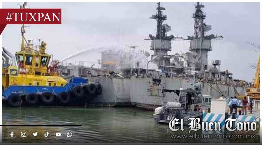 Tuxpan, Ver.- La fragata ARM Allende (F-211), un antiguo buque de guerra de la Armada de México anclado en el puerto de Tuxpan, se incendió la mañana de este sábado durante trabajos de desguace. Un reporte extraoficial señala que al menos dos personas resultaron lesionadas y fueron trasladadas al Sanatorio Naval.