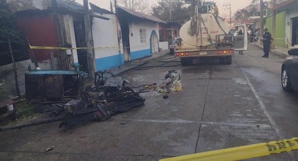 Se informó que el fuego avanzó rápidamente debido a las características de la vivienda, con techo de lámina, lo que provocó el colapso parcial de la estructura.