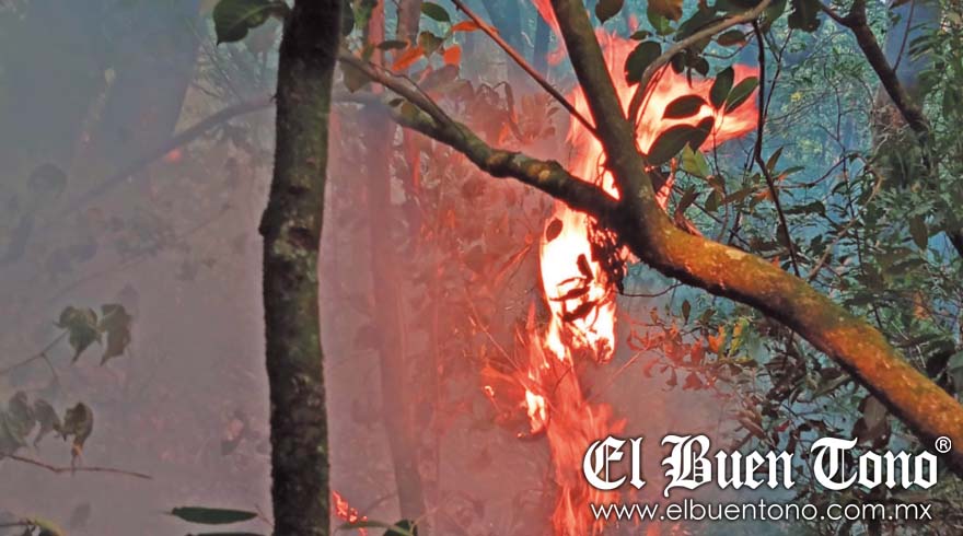 Río Blanco.-Las fuerzas de tarea de los tres órdenes de gobierno continúan con el trabajo para contrarrestar el incendio forestal que se registra en el paraje Santa Catarina del predio Paseo de Tenango..