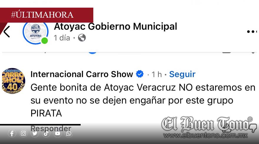 De acuerdo con la publicación realizada en la misma página del Ayuntamiento, el grupo “Carro Show” advierte a la ciudadanía de Atoyac que no se deje engañar, ya que ellos no se presentarán en dichas festividades. El mensaje, dirigido específicamente a los habitantes de este municipio, sugiere que el espectáculo que promociona el gobierno municipal sería interpretado por un grupo “pirata” o imitador, lo que ha generado desconcierto entre las familias que esperaban ver a los artistas.