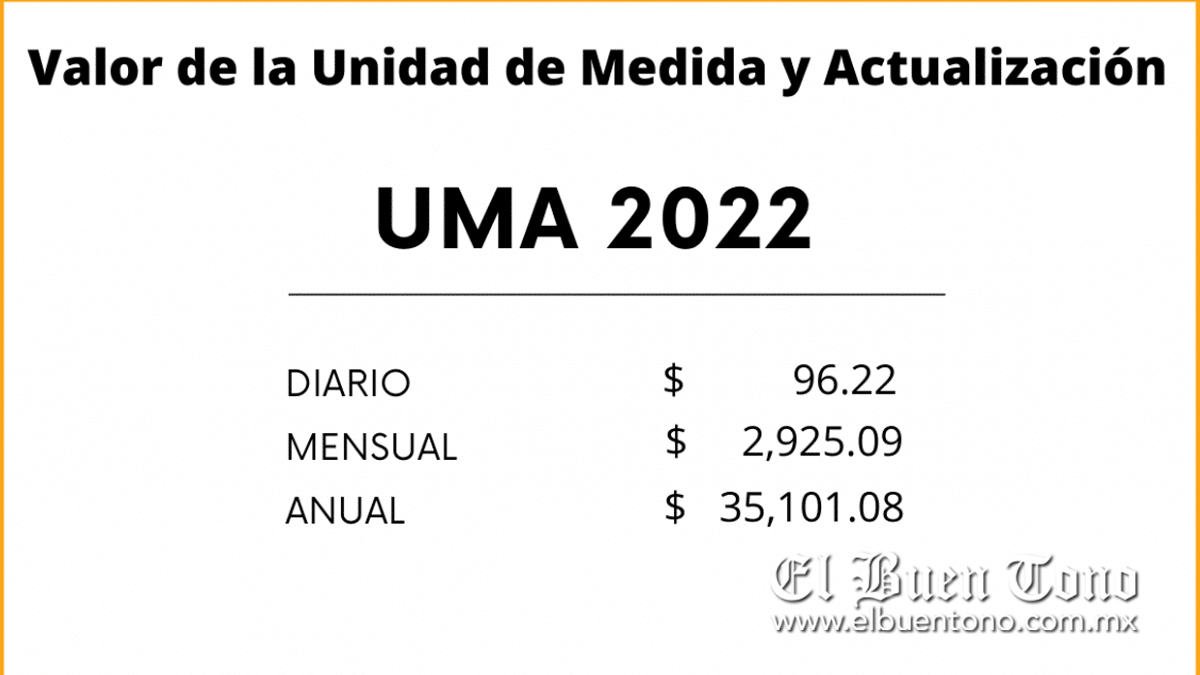 CDMX.- Será a partir del 1 de febrero que la Unidad de Medida y Actualización (UMA) tendrá un valor de 96.22 pesos, así lo informó el Instituto Nacional de Estadística y Geografía (INEGI); también indicó que el valor mensual de la UMA será de 2 mil 925.09, en tanto que el valor anual será de 35 mil 101.08 pesos.