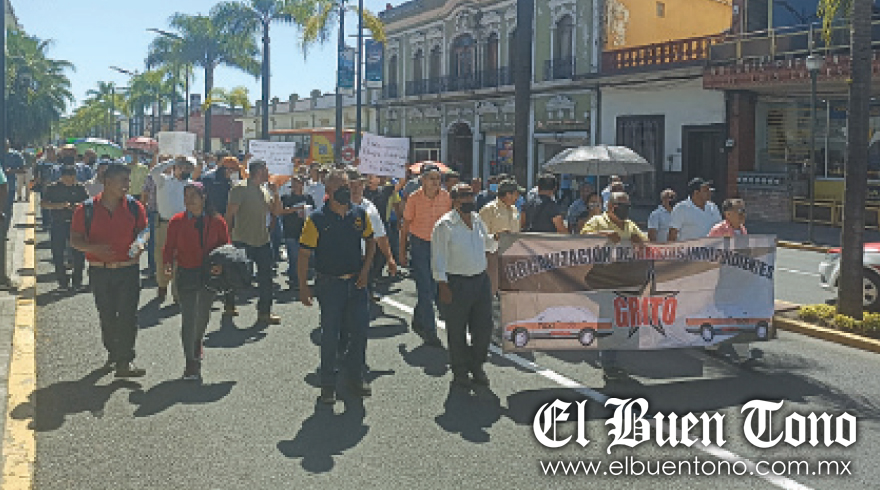 Más de un centenar de taxistas de Orizaba y de la región de Córdoba, marcharon ayer por las calles de Orizaba, para exigir a la Dirección General de Transporte Público, reconsidere el cambio de unidades y al Gobierno del Estado la creación de un Fideicomiso que permitirá la renovación de las