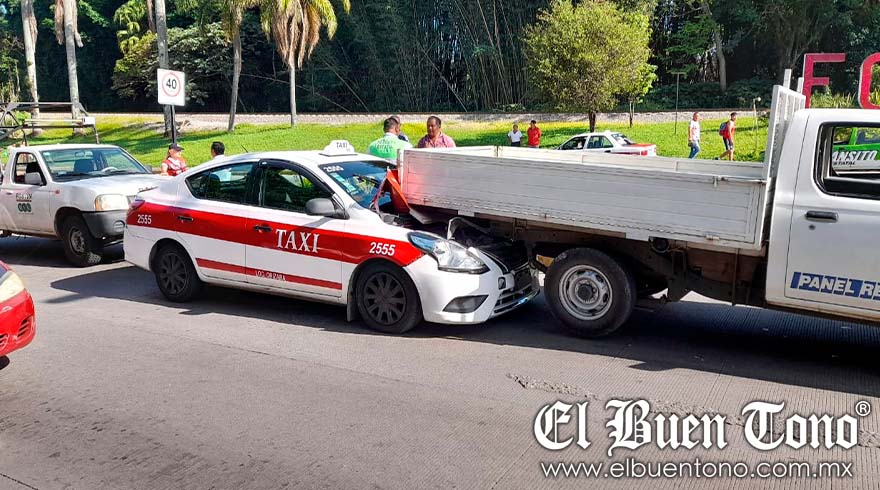 Al pasar la zona de tianguis, el conductor de la camioneta redujo su velocidad, al encontrarse el semáforo en rojo, y fue cuando el conductor del taxi de Orizaba con el número 2555, se impactó por alcance.