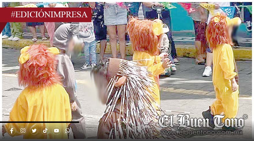 Entre las figuras que más llamaron la atención de los espectadores se encontraban leones, puercoespines y medusas, cuyos diseños destacaron por la combinación de texturas y colores vivos que los pequeños lucían con entusiasmo mientras caminaban acompañados de sus maestros.