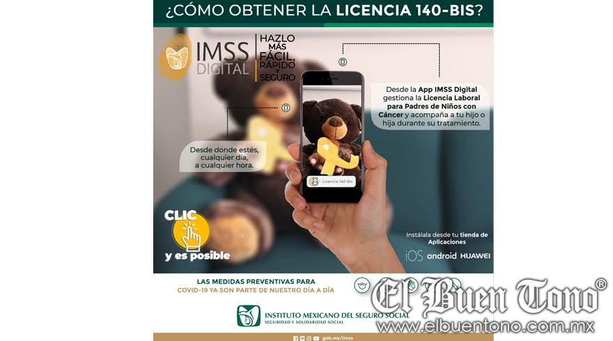 La maestra Yareli Betancourt Rodríguez, titular de la Jefatura de Servicios de Salud en el Trabajo, Prestaciones Económicas y Sociales, comentó que la Licencia 140 Bis consiste en que las madres o los padres trabajadores, asegurados por el IMSS, tienen derecho a ausentarse del trabajo hasta 28 días dentro de un lapso de 3 años si la salud de su hijo lo requiere. Además, los beneficiarios de esta licencia reciben un subsidio equivalente a 60% de su salario.