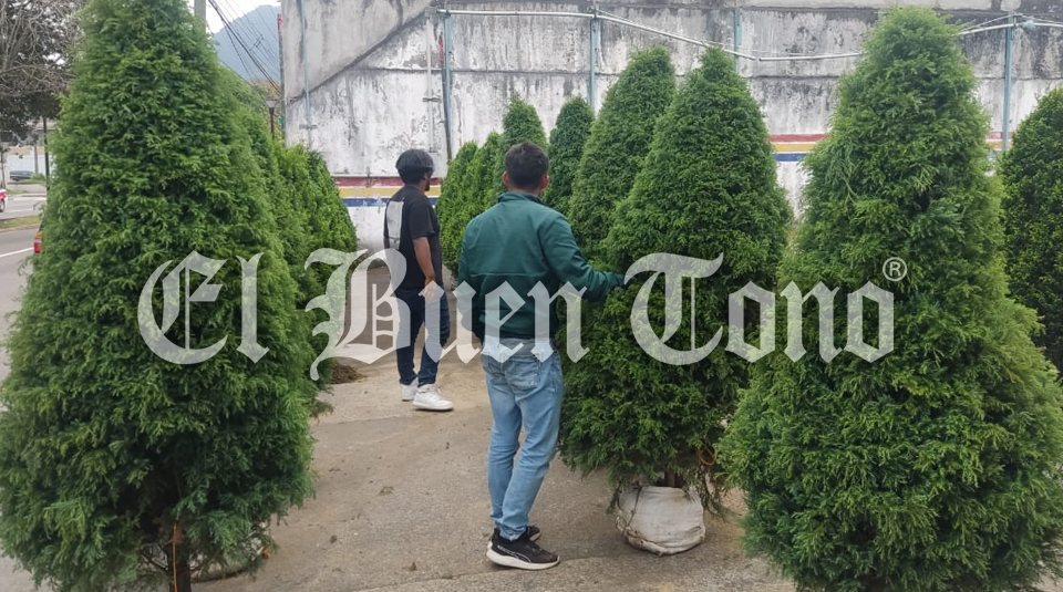 Jonathan Ruiz, se dedica a la venta de pinos desde hace varios años, su familia se encarga de cultivar este tradicional adorno representativo de la Navidad, que se ofrecen en diferentes tamaños y costos.