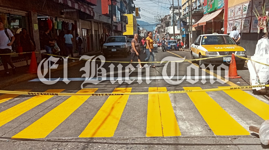 Córdoba, Ver.- Con el proceso de liberación de las calles del mercado Revolución, iniciaron los trabajos de balizamiento en la calle 9, la cual está ya no cuenta con los puestos de los comerciantes del zoco.