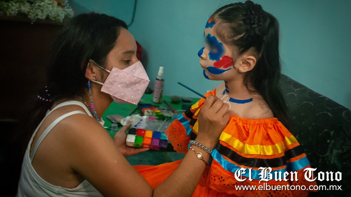 TOMATLÁN.- La creatividad y las manos mágicas de los jóvenes hacen resaltar las tradiciones del Día de Muertos, sobre todo con el diseño floral de Yolotzin Morales Reyes, quien maquilló a la niña Mayté N.A., con el apoyo del fotógrafo Osman López.