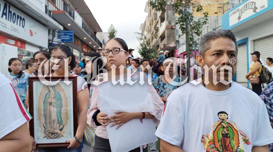 Con cánticos como “Desde el cielo una hermosa mañana la Guadalupana”, varios hombres, mujeres y niños caminaron por las principales calles de la ciudad con veladoras en mano, así como con la imagen de la Morenita del Tepeyac.