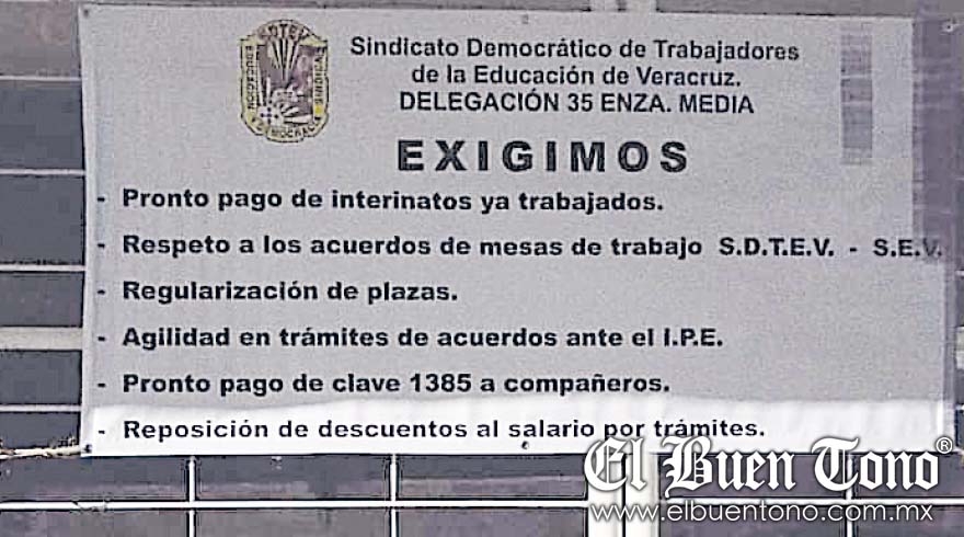 El día de ayer a primera hora, los maestros afiliados al Sindicato Democrático de Trabajadores de la Educación de Veracruz, Delegación 35, tomaron varias instalaciones educativas como medida de presión para exigir que la Secretaría de Educación cumpliera con sus demandas pendientes.
