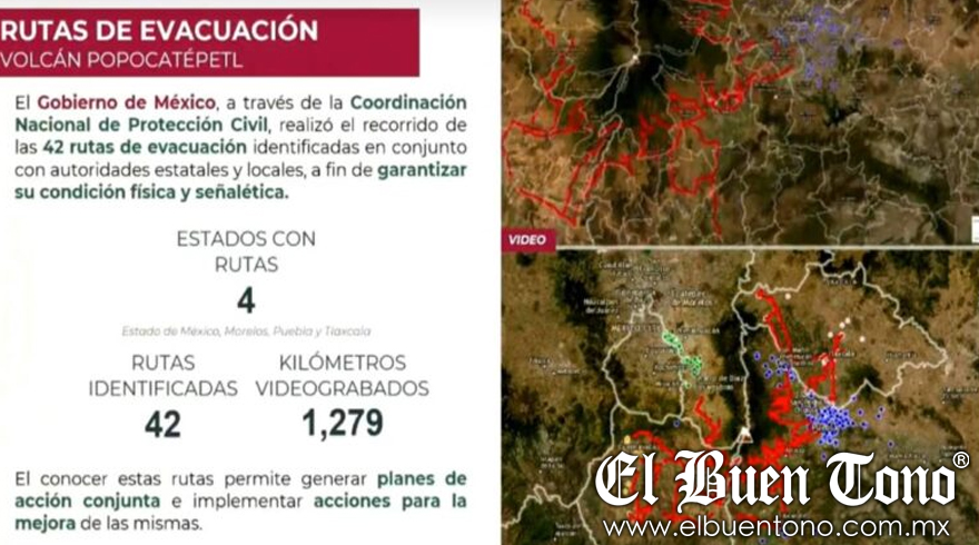 Puebla.- Ante la posibilidad de erupción del volcán Popocatépetl, la coordinación Nacional de Protección Civil instaló 42 rutas de evacuación en comunidades del Estado de México, Morelos, Puebla y Tlaxcala, informó la coordinadora de Protección Civil Nacional, Laura Velázquez Alzúa. El estado de alerta del volcán se encuentra en Semáforo Amarillo Fase 3.