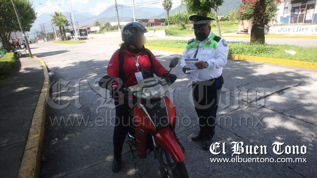 Mariano Escobedo, Ver.- Personal de la Delegación de Tránsito de Mariano Escobedo, intensificó la campaña de concientización del uso del casco entre automovilistas.