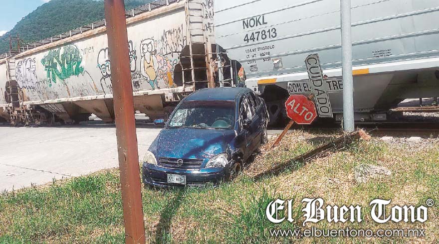 Nogales.- Un conductor imprudente intentó ganarle el paso al tren y terminó siendo embestido por el ferrocarril en el cruce que va de Nogales a Huiloapan.