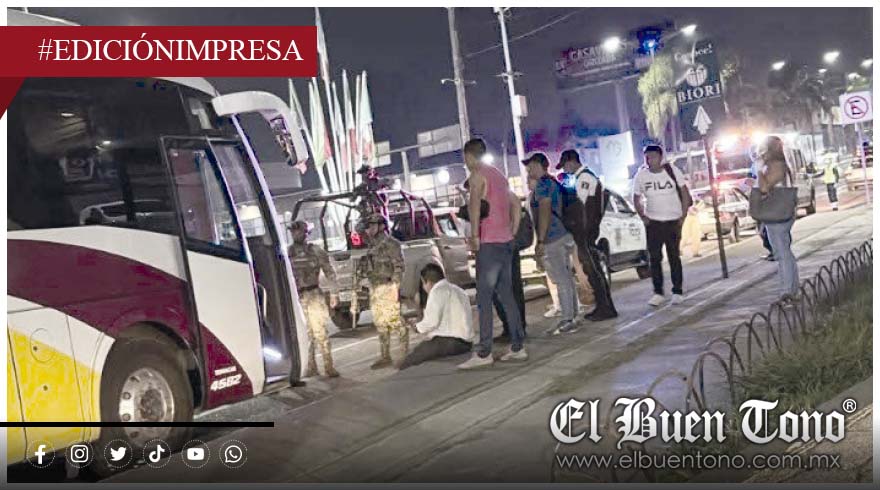 Durante el ataque, el conductor resultó lesionado, pero no detuvo la marcha y logró llegar hasta el trébol de Escamela, donde la unidad y los pasajeros fueron resguardados por elementos policíacos, Guardia Nacional y Marina.
