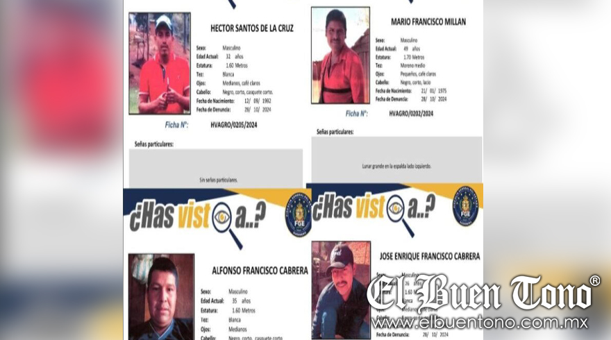 Otros desaparecidos fueron identificados como Héctor Santos de la Cruz (32 años), José Enrique Francisco Cabrera (26 años), Alfonso Francisco Cabrera (35 años) y Mario Francisco Millán (49 años). La Fiscalía aún no ha proporcionado detalles sobre la décima persona buscada.