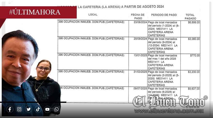 Por su parte, la tesorera Rosa María Velasco Ramírez confirmó que el inmueble es de dominio público y que se encuentra ocupado desde agosto de 2024 hasta julio de 2025, periodo en el cual —según su propio informe— se han recibido cinco pagos irregulares: