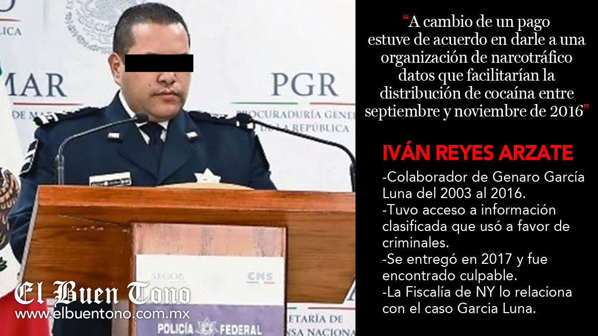Según con la acusación, Reyes Arzate ocupó su cargo en la época en la que García Luna fue el secretario de Seguridad de México, entre 2006 y 2012, y ambos recibieron sobornos por parte del cartel de los hermanos Beltrán Leyva.