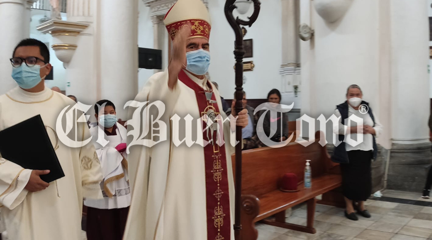 La homilia inició a las 12 horas, donde varias personas acudieron a recibir la bendición del prelado.