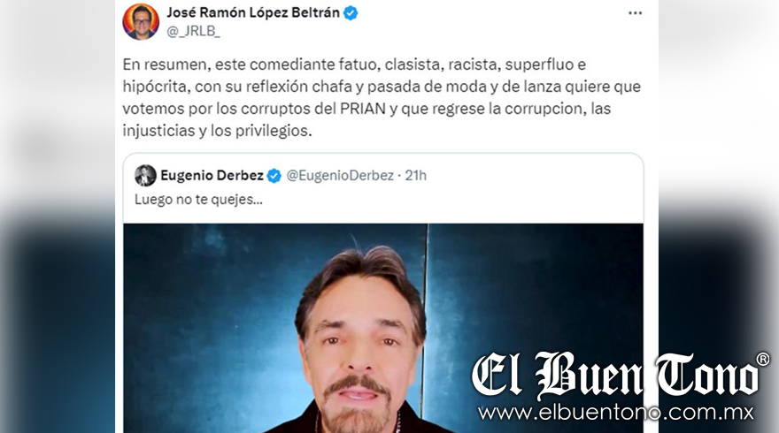 Nacional.- Tras la publicación de un video del reconocido comediante y actor mexicano, Eugenio Derbez, en el que hace un llamado a votar este 2 de junio, se ha desatado una fuerte polémica en redes sociales. El hijo mayor del presidente Andrés Manuel López Obrador, José Ramón López Beltrán, respondió con duras críticas al también productor.