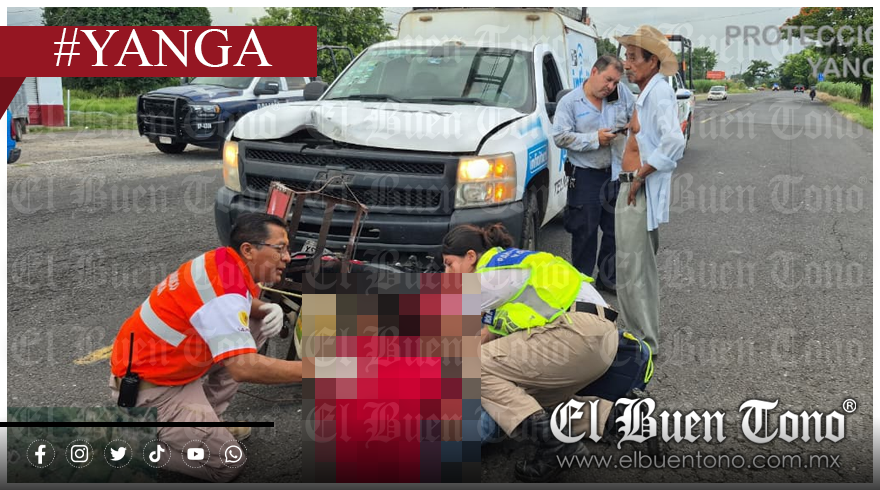 Yanga, Ver.- Lesionado resultó un joven al ser atropellado por una camioneta de Telmex esta tarde en la carretera federal Córdoba -Veracruz, a la altura del kilómetro 18.