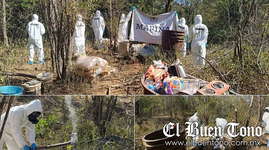 Sinaloa.- Elementos de la Secretaría de la Marina (Semar) llevaron a cabo dos operativos en Sinaloa y Durango en los que lograron el hallazgo de un laboratorio clandestino y un plantío de marihuana, ambos relacionados con las facciones criminales de Los Chapitos y Los Mayos.