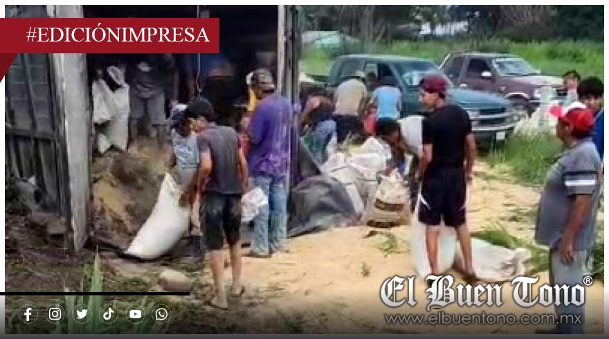 Aunque no se reportaron heridos, la gente ratera de comunidades cercanas acudieron al sitio y comenzaron a robar la carga, sin que elementos policiacos lo impidieran.
