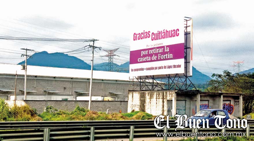 Orizaba.- El espectacular que está sobre la autopista donde le agradecen el retiro de la caseta al gobernador Cuitláhuac García Jiménez, es un logro adjudicado y con miras a las próximas elecciones, pues la eliminación de la garita fue un trabajo de hace muchos años de diversos sectores de Orizaba y Córdoba.